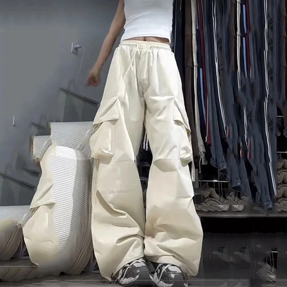 女性用ハイウエストバギースウェットパンツ、y2kカーゴパンツ、女性用ストリートウェア、ヒップホップパンツ、大きなポケット、カジュアルなローウエストドローストリングパンツ ボトム ワイドレッグ バギーパンツ T240831222520_03