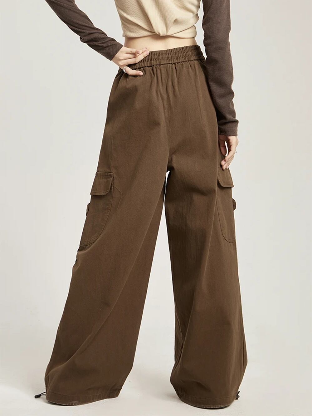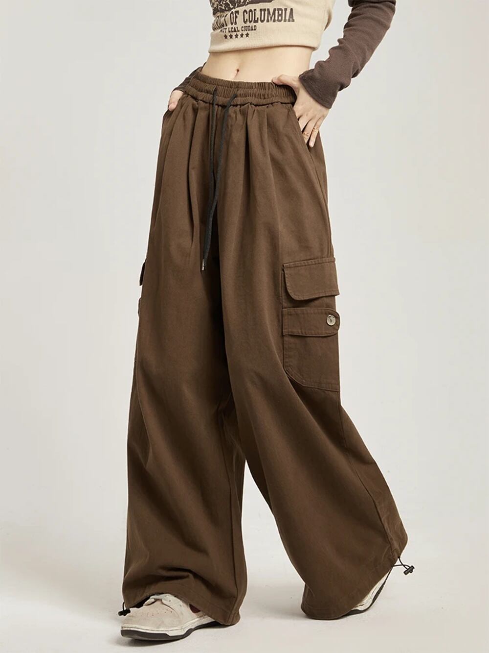 広州-女性の日本のワイドレッグカーゴパンツ、特大のカーゴパンツ、女性のルーズカジュアルストリートウェア、ヒップホップポケット、秋 ボトム ワイドレッグ バギーパンツ T240831222528_01
