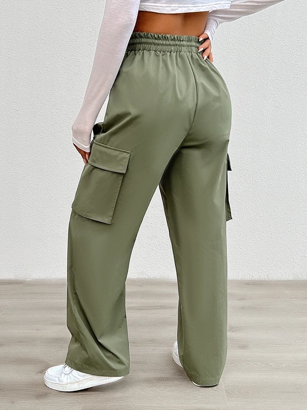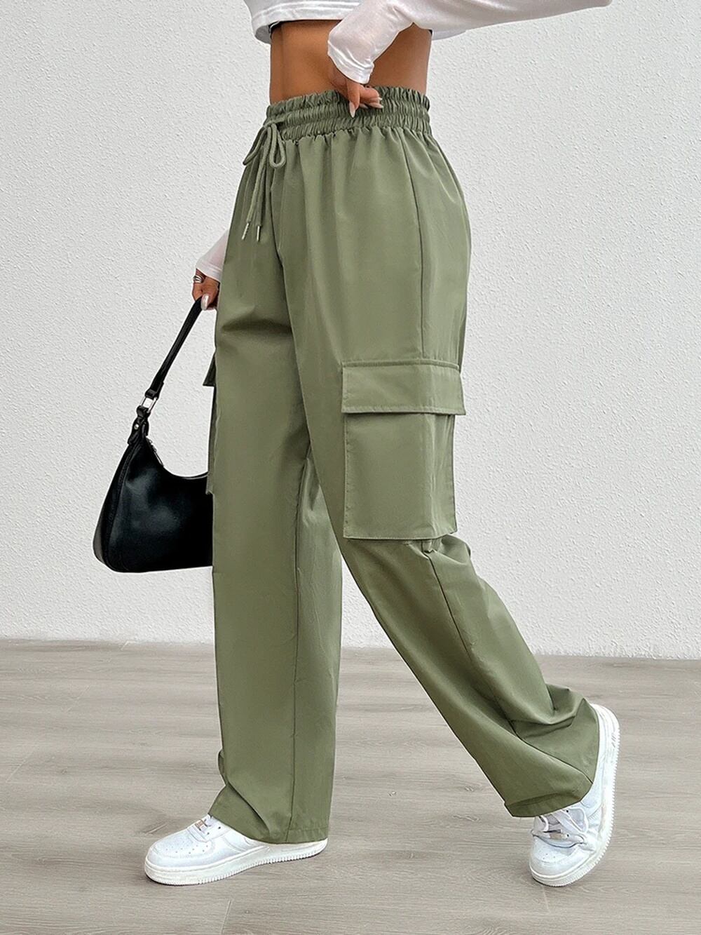 女性用伸縮性巾着ウエストパンツ、オーバーオール、ワイドレッグバギーパンツ、y2kストリートウェア、ポケット付き特大スウェットパンツ、新品、2024 ボトム ワイドレッグ バギーパンツ T240831222615_01