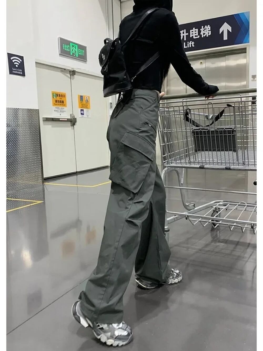 "Houzhou-女性用カーゴパンツ,グレーヴィンテージ,バギー,韓国風,ハイウエスト,ハラジュク,美的,ストリートウェア,ヒッピー,女性用 ボトム ワイドレッグ バギーパンツ T240831222638_01