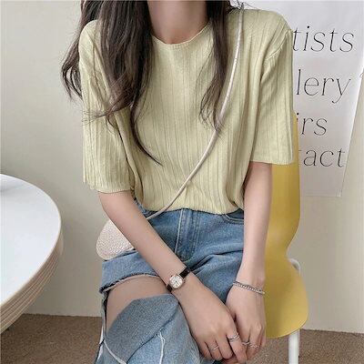 韓国ファッション人气 新作 着痩せ 夏服 トップス ゆったり アイスシルク ニットOL 通勤半袖 Tシャツ tシャツ レディース今っぽシアーシャツ