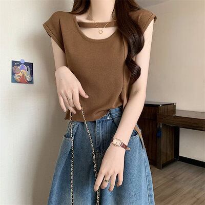 涼しく楽ちんセッ半袖Tシャツ トップス フレンチ通勤半袖ニット夏の新ラウンドネックシンプルショート丈で着やせ レディース 韓国ファッション