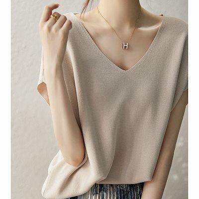 涼しく楽ちんセッ半袖Tシャツ トップス アイスニット夏の新作ゆったり着やせ気質日焼け止めインナー薄手半袖 レディース 韓国ファッション