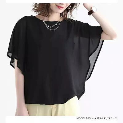 使える!シフォンブラウス Tシャツ 半袖 ドルマンデザイン ドルマンデザインでゆるっとしたフォルムシフォントップス シフォン ブラウス 半袖 フリル袖 レディース 韓国ファッション
