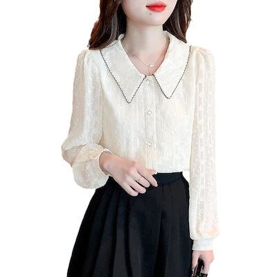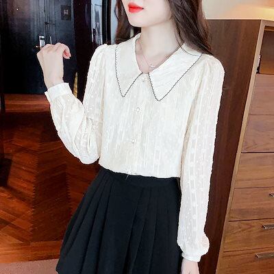 人気の新作今っぽシアーシャツ トップス シフォンシャツ長袖 OL 通勤 半袖 ドールネック でカジュアルに レディース 韓国ファッション