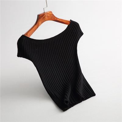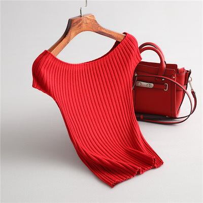 インナーアウター Tシャツ タンクトップ 夏服 ワンショルダーニット半袖 レディース 通勤