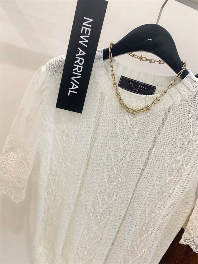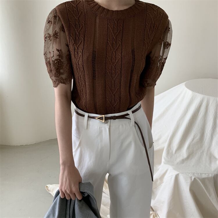 大人のデイリーウエア レーヨン レース 半袖上着 薄手 2023夏 エアコンシャツ スリム ニットトップス