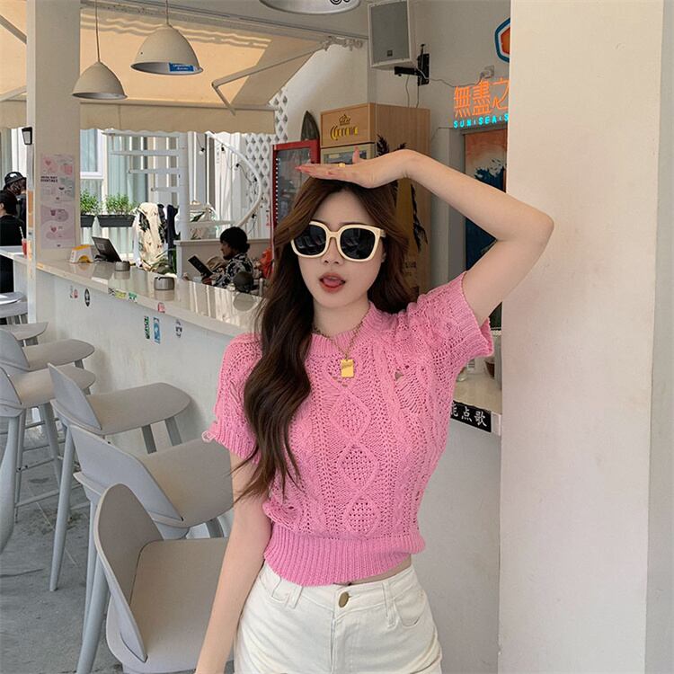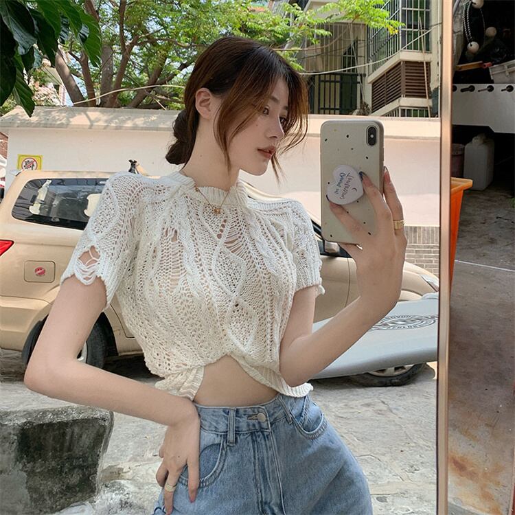 私のスタイルに合うものが良い 透かし彫り 半袖 ジェントルスタイル 洋風 薄手 破れ ニットトップス