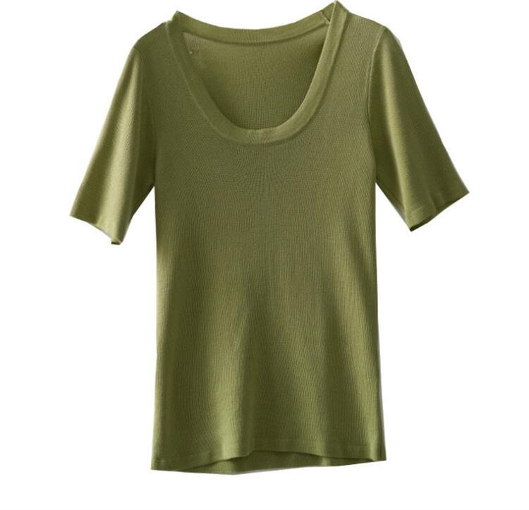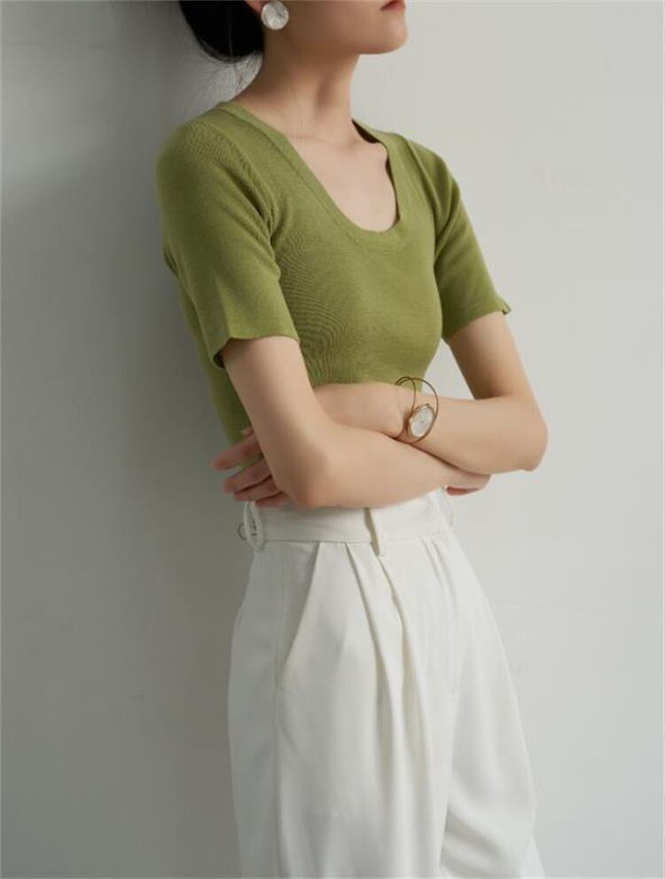 お時間限定SALE ニットトップス 半袖 柔らかい 薄手 上着 uネック スリムフィット 夏 大人気