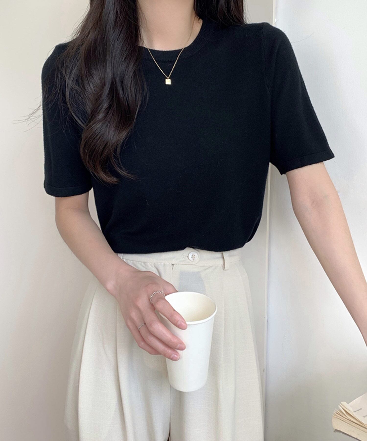 ベーシック 半袖 ニットトップス ma 【即納】 Tシャツ カットソー レディース 韓国 プチプラ おしゃれ