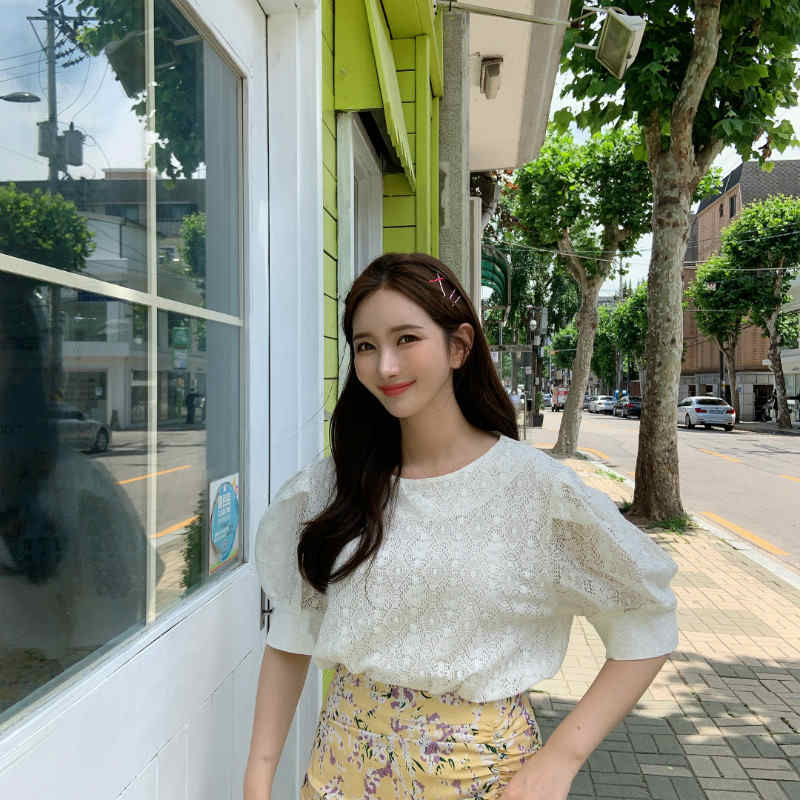レディースブラウス総レースラウンドネックショートシャツ半袖シャツトップスカジュアルキュート可愛いフェ