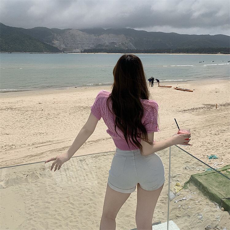 コーデに輝きを添える ゆったりする 半袖 ニットトップス デザインセンス トレンド レトロ 気質