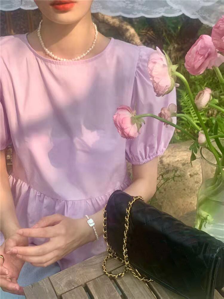 人気が急騰する ロマンス パフスリーブ 半袖 ドールトップス シャツ スリム ラウンドネック