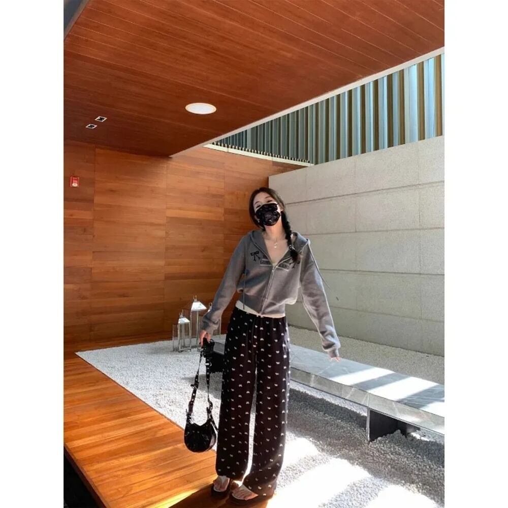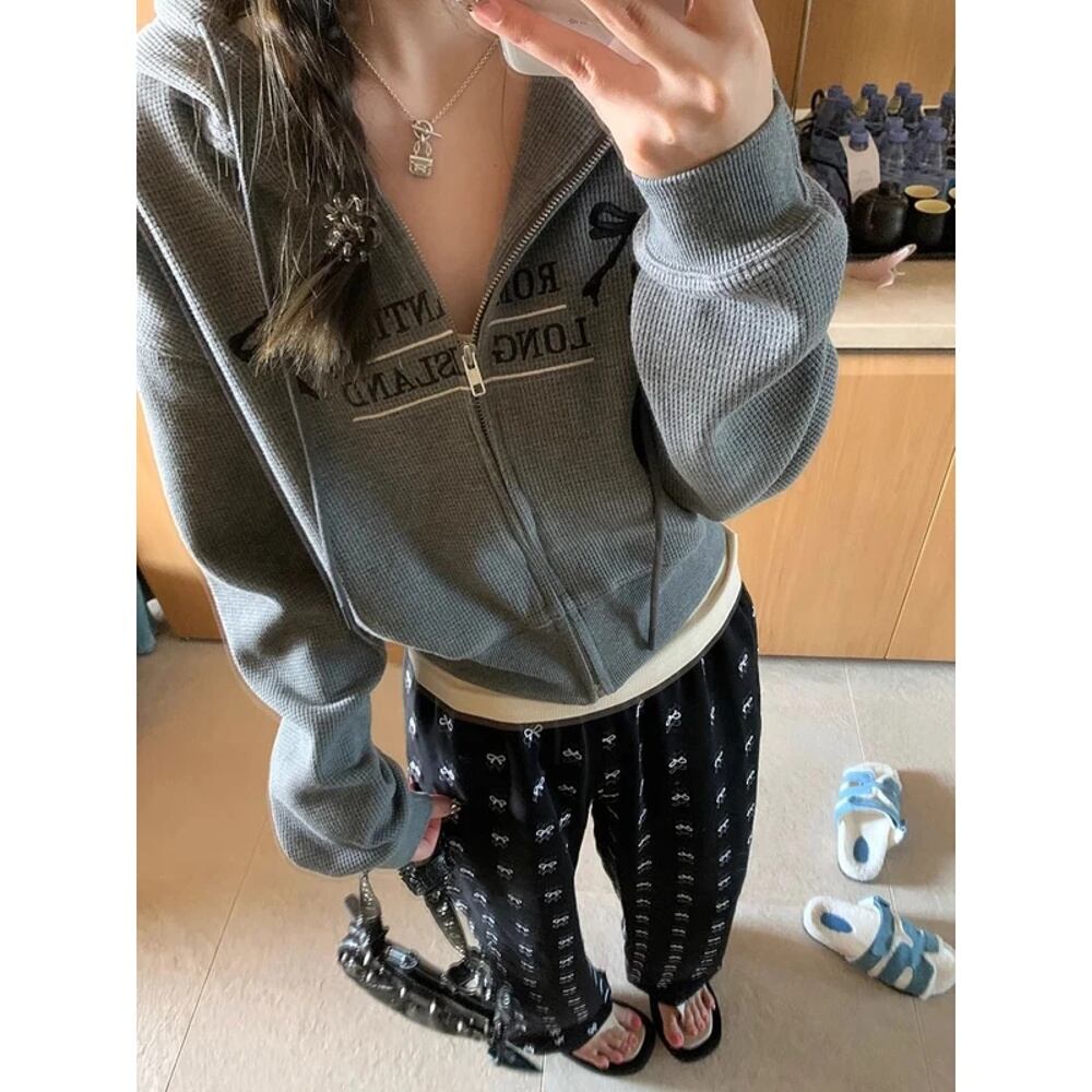 Deeptown-女性のヴィンテージクロップパーカー,韓国スタイルのジップアップスウェットシャツ,柔らかい弓の刺embroidery,カジュアルなコットンフード,原宿,y2k パーカー ジャージ y2k T240908204230_01