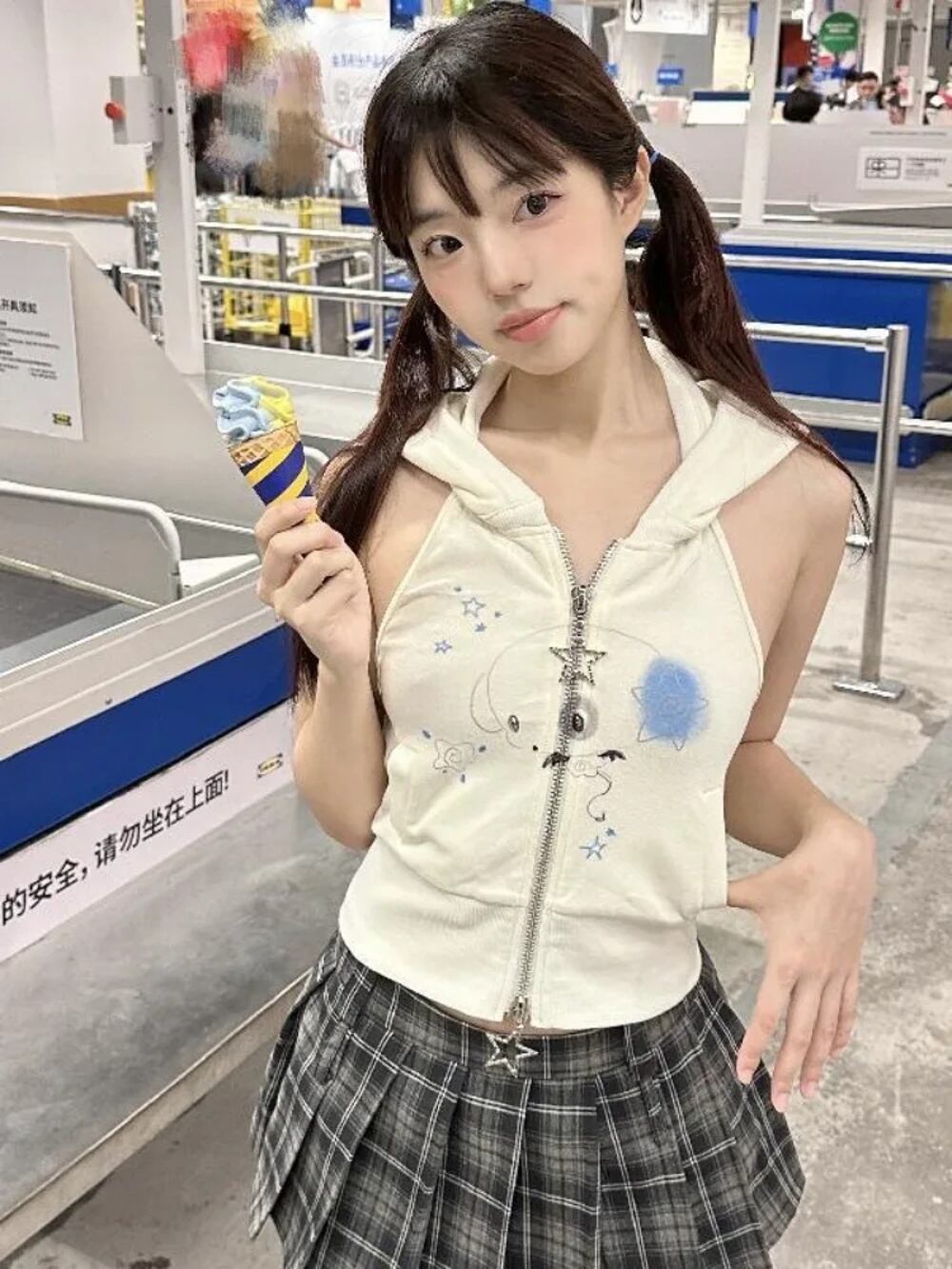 Kawaiiうさぎ耳付きベスト女性用、スリムフィットスウェットシャツ、ジッパーカーディガンコート、y2k e-girl、ノースリーブトレーナー、トップス、夏、2024 パーカー ジャージ y2k T240908204358_01