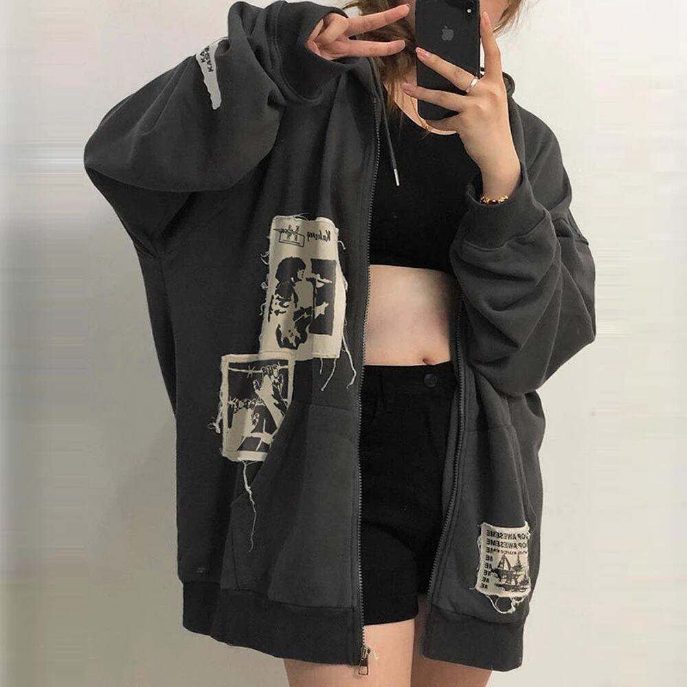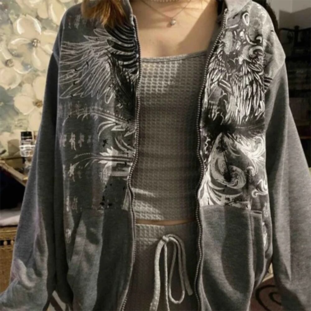 原宿-僕の女性向けゴシックTシャツ,ダークアカデミア,ストリートウェア,グランジスタイル,文字の翼,ジッパー付き,2k パーカー ジャージ y2k T240908204402_01