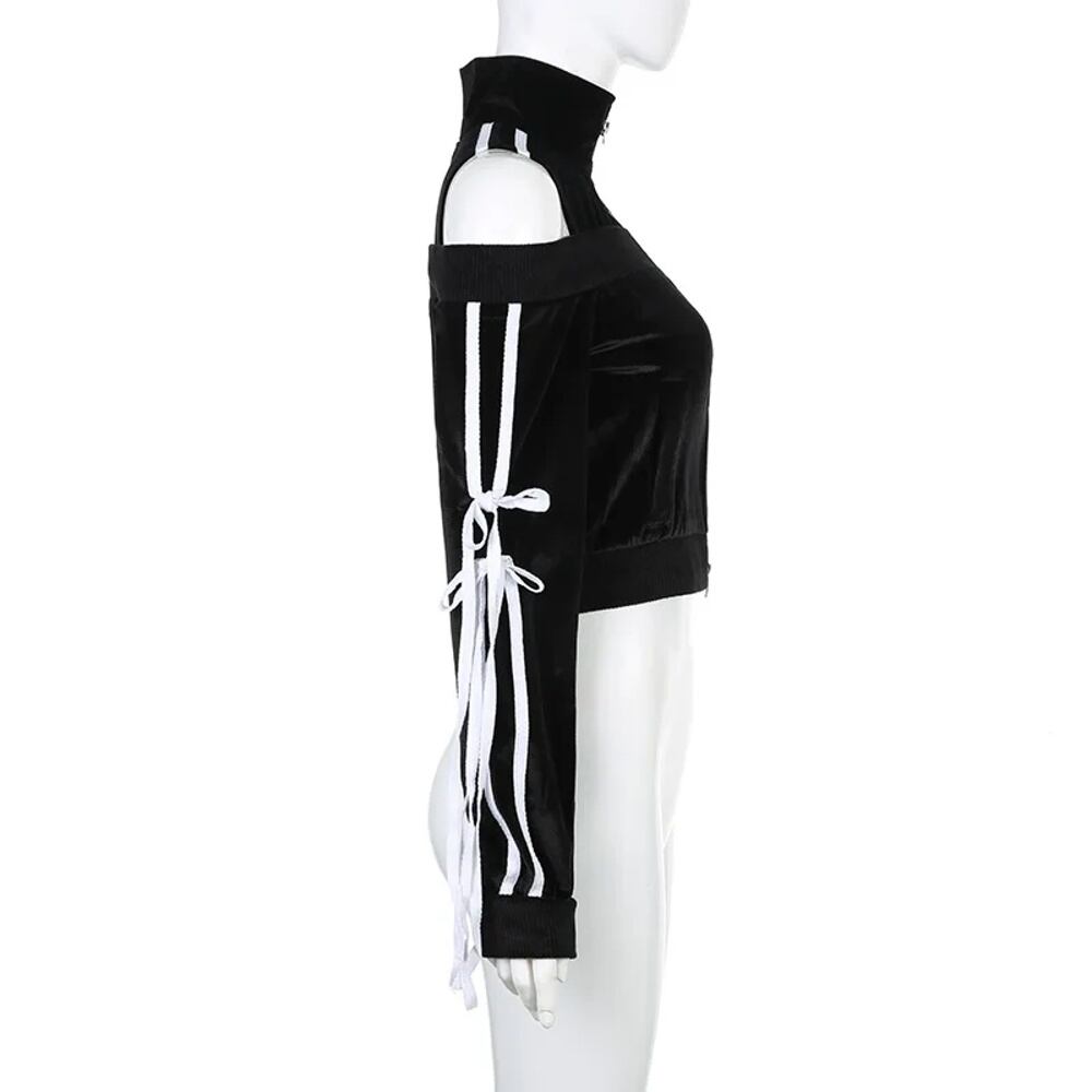 女性用ストライプレースアップカーディガン,ヴィンテージクロップドジャケット,カットアウトショルダー,ジッパー,韓国スタイル,秋,2023 パーカー ジャージ y2k T240908204423_01