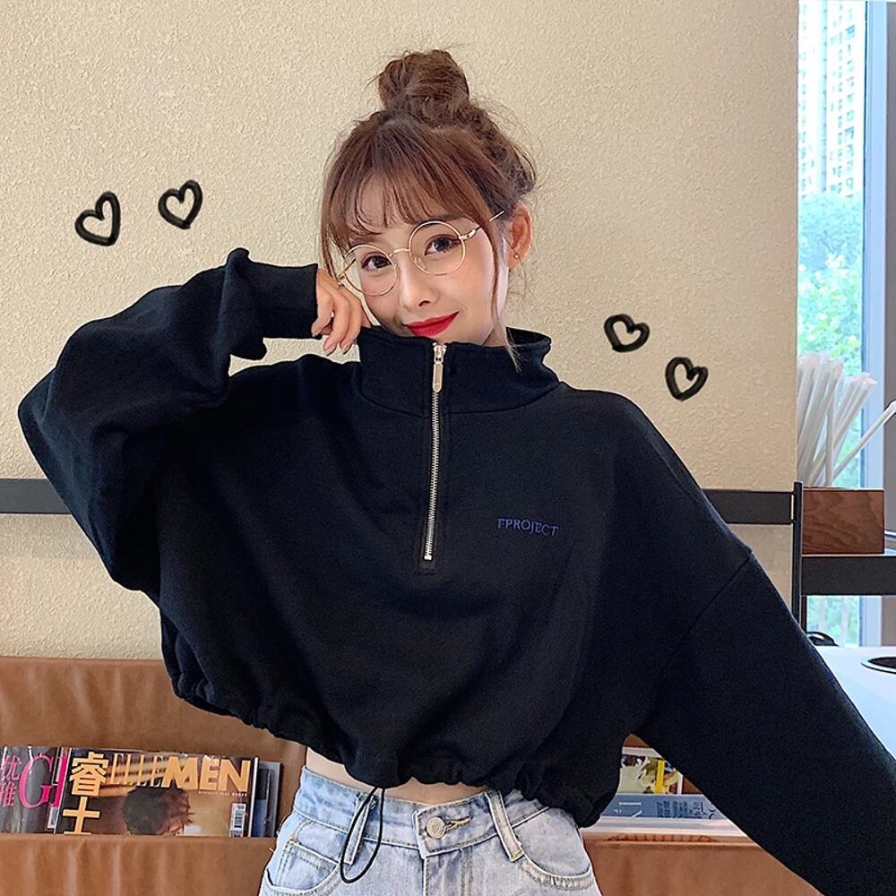 Mexzt-女性用長袖パーカー,原宿,ストリート,ジッパー,黒の長袖,ルーズフィット,シンプル,伸縮性ウエストトップ パーカー ジャージ y2k T240908204510_01