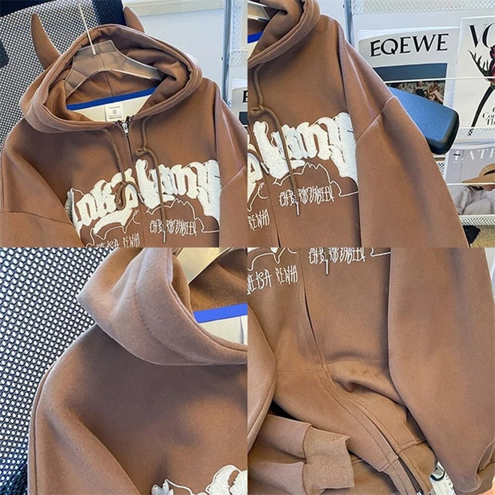女性用y2k悪魔刺繍パーカー、カジュアル、レトロ、ルーズ、長袖、フード付きスウェットシャツ、カップル、ゴシックジップアップパーカー、秋冬 パーカー ジャージ y2k T240908204554_03