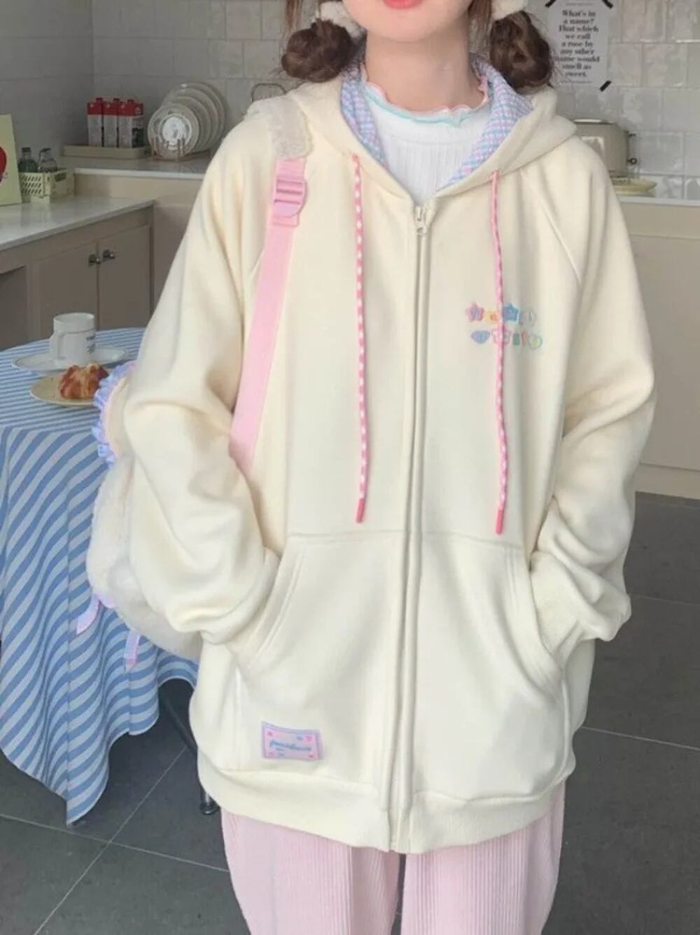 女性の特大ジップアップパーカー、韓国風、キュート、カワイイ、日本、原宿、甘い刺embroidery、アウターウェア、フード付きジャケット、ガーリースタイル、y2k パーカー ジャージ y2k T240908204650_02
