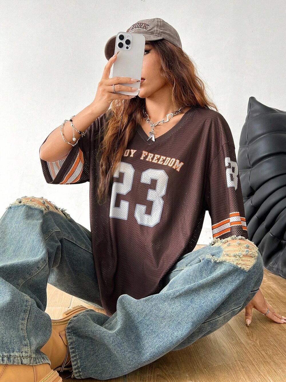 女性用半袖VネックTシャツ,特大トップス,サッカージャージ,スポーツ,夏,23プリント,y2k,新品 パーカー ジャージ y2k T240908211454_03