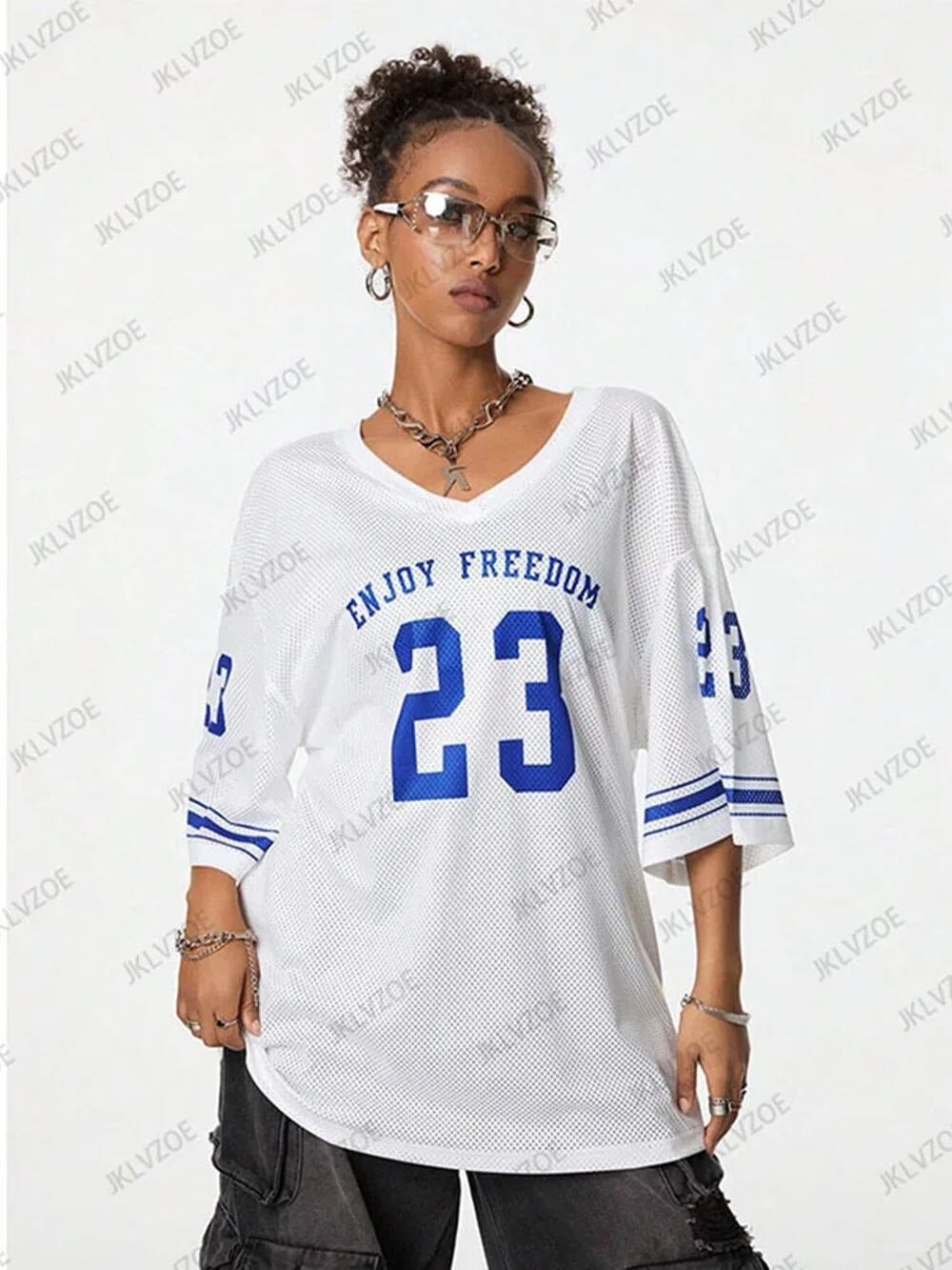 女性用半袖VネックTシャツ,特大トップス,サッカージャージ,スポーツ,夏,23プリント,y2k,新品 パーカー ジャージ y2k T240908211454_05